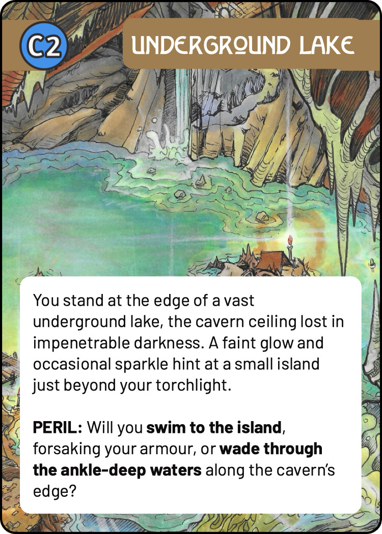 I’m not entirely happy with the front of the encounter cards - its difficult to get a decent image for these cards and I’d like to favour human made images where possible. Also, i think the front of the card works better in a portrait orientation during play – you can sit them up in the box and more easily thumb through the location numbers.