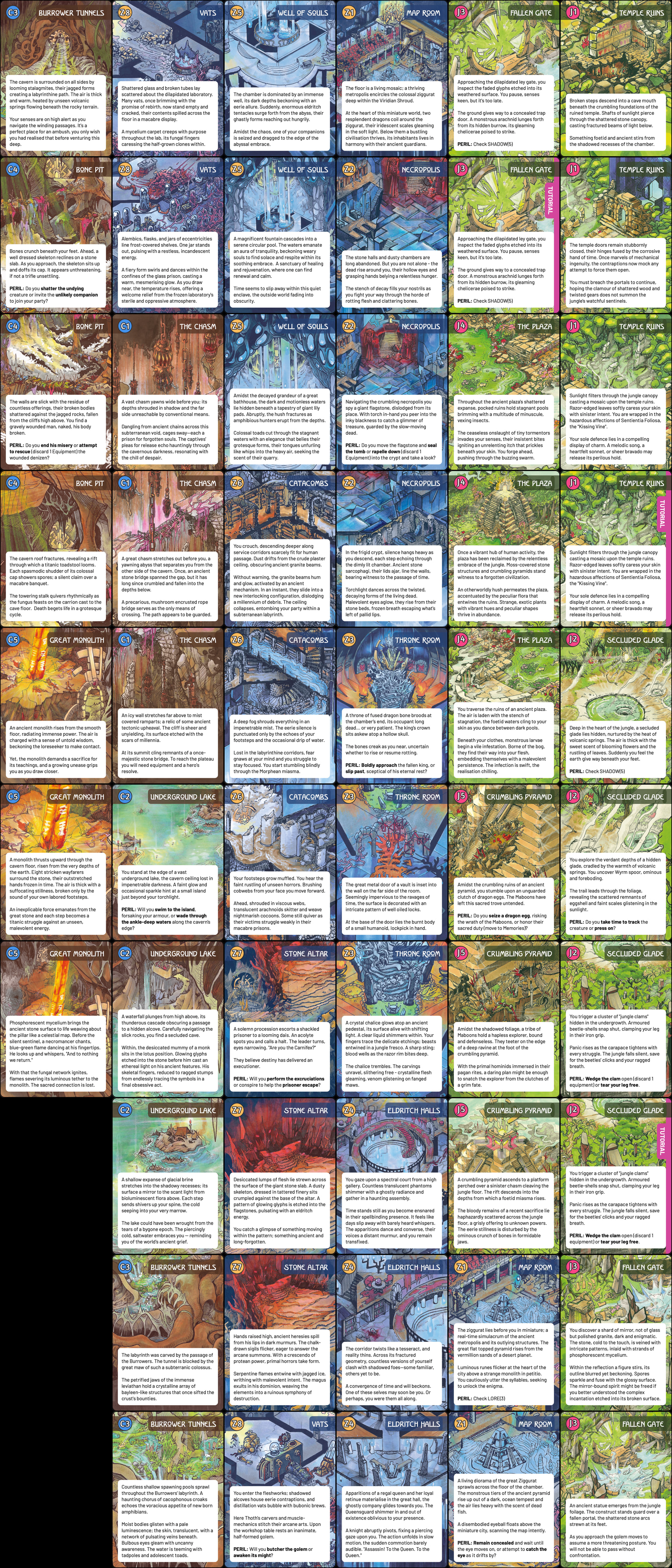 All looks good from here – I think its a great improvement using the map images over the hit and miss generated ones. I’ve put a complete front of card export in ./card-decks/encounter-card/export plus a contact sheet of all the cards below: